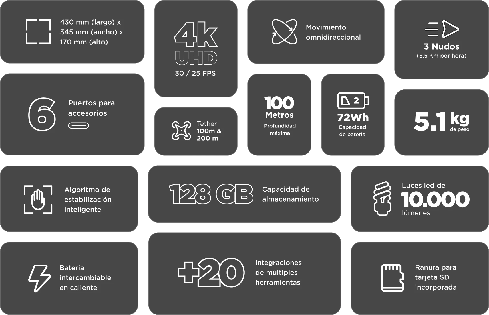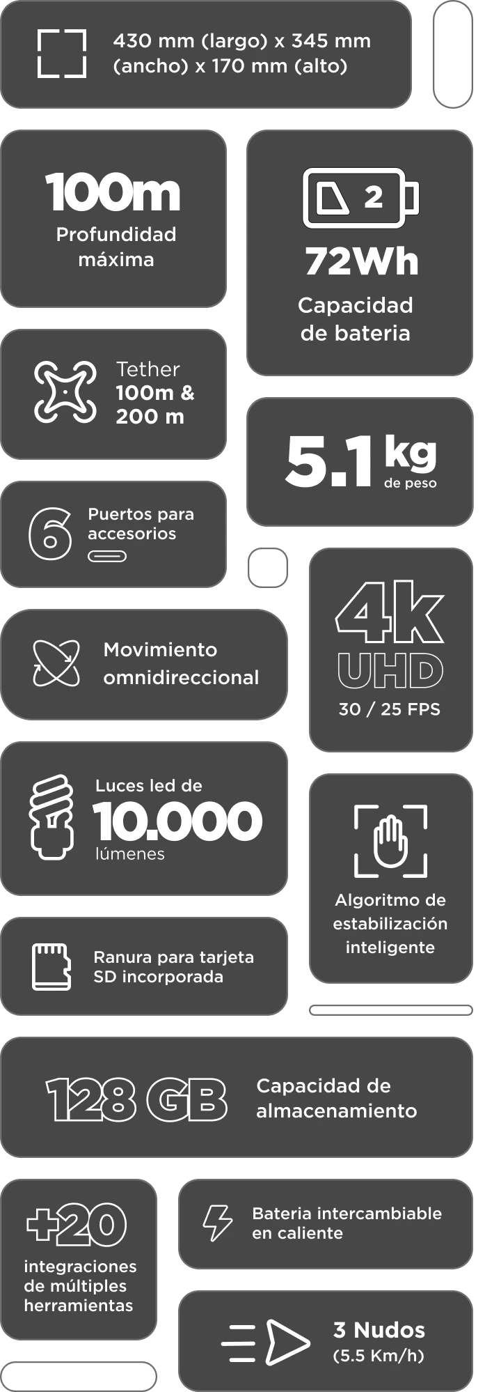 El modelo FIFISH E-GO permite la integración eficiente de una amplia gama de herramientas de nivel profesional para abordar diferentes escenarios y tareas.
