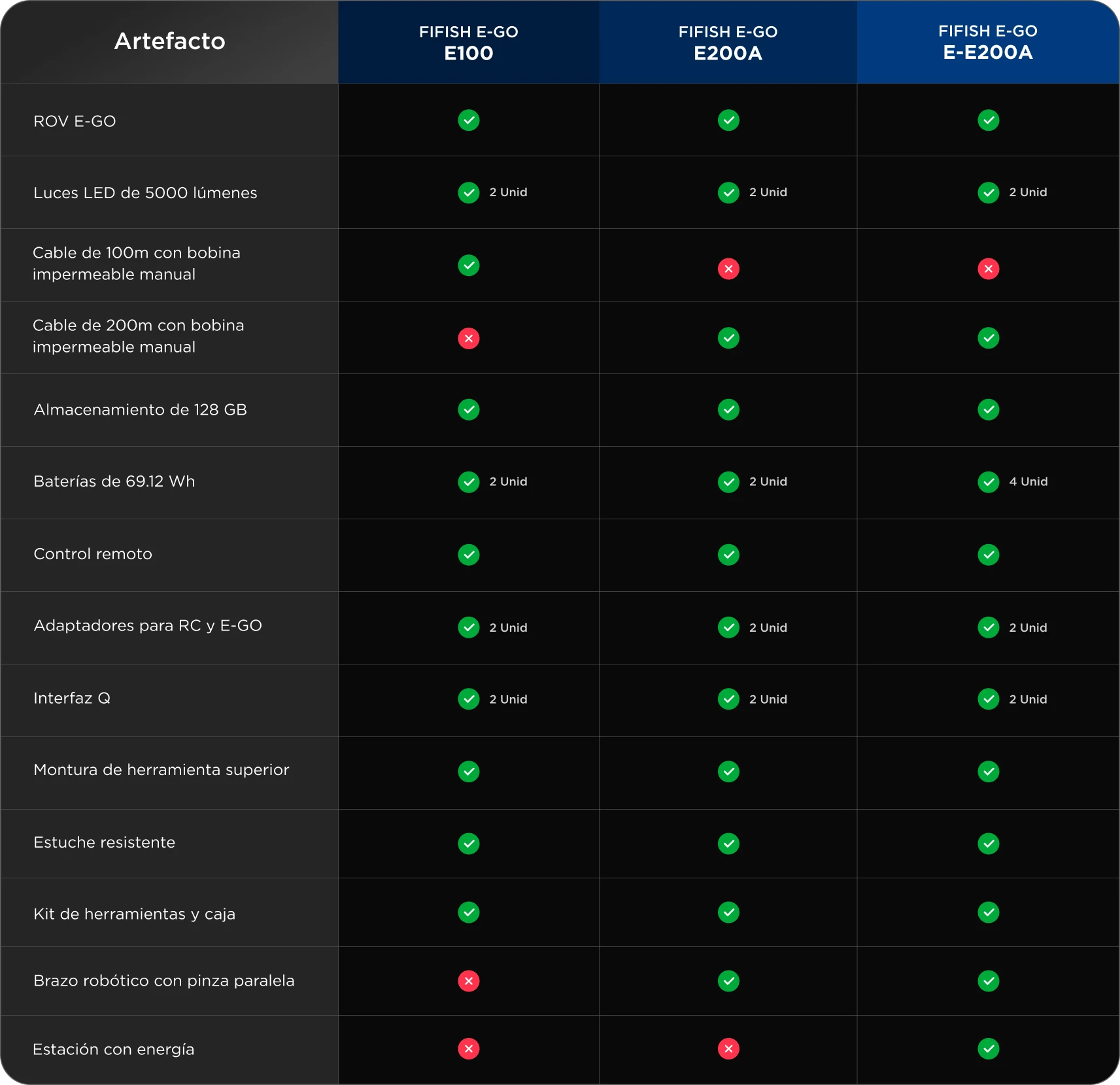 Al igual que el V-EVO, el FIFISH E-GO funciona con baterías, pero destaca con su sistema de baterías intercambiables. Aunque es necesario llevar el ROV a la superficie para el intercambio, su sistema energy station permite cargar dos baterías adicionales, ofreciendo flexibilidad y tiempo extendido de trabajo.