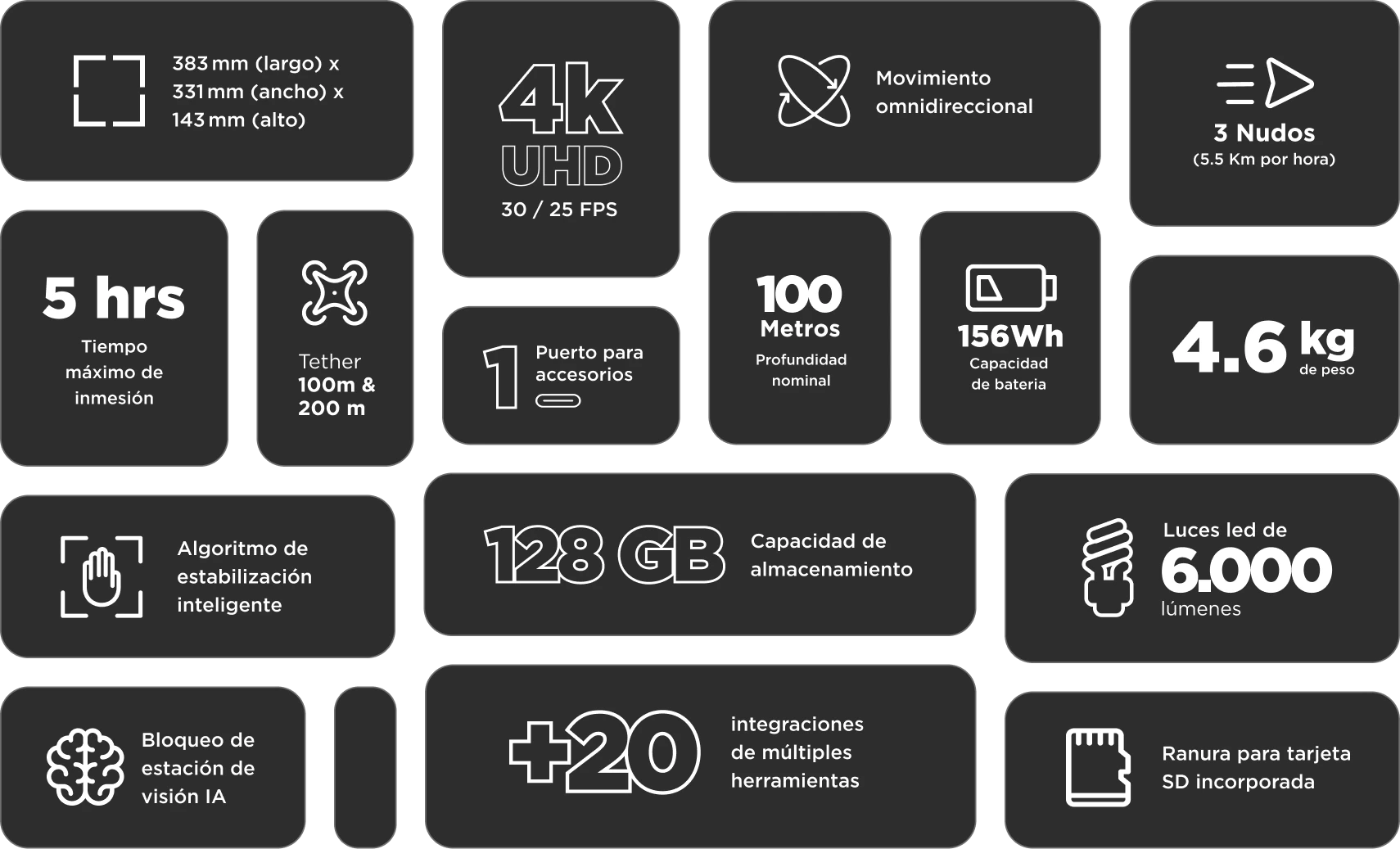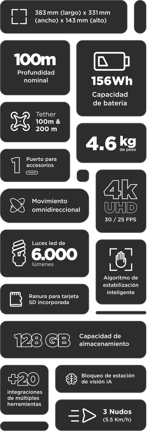 El modelo FIFISH V6 EXPERT permite la integración eficiente de una amplia gama de herramientas de nivel profesional para abordar diferentes escenarios y tareas.